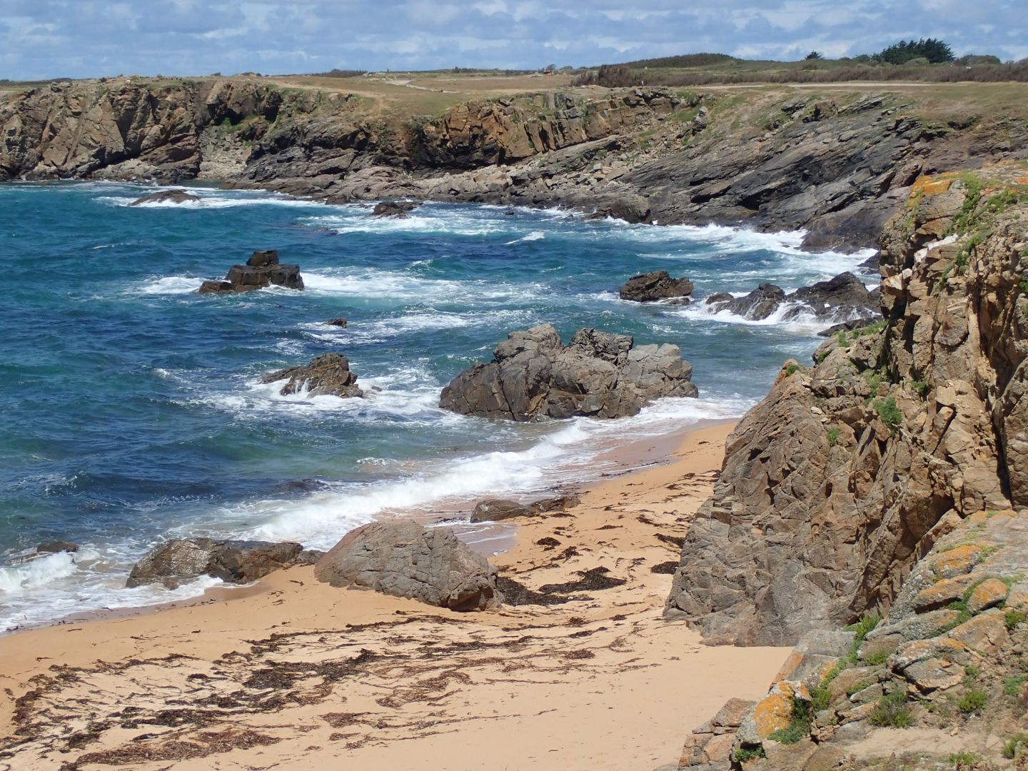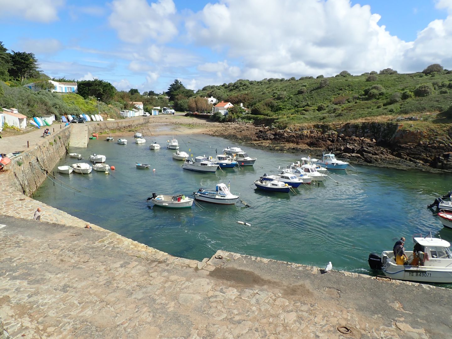 From Pornic we sailed to an Island about 14 miles off the coast. There is something special about sailing to an island and we spent 4 nights there. We had a day of rain so stayed longer so we could walk some of the coastline of the island. The island is a popular holiday destination and many of the houses were holiday homes as in Pornic. The island has around 5000 inhabitants and most holidaymakers arrive by ferry as foot passengers so the island is quiet and has many bikes for rent. It is also an island of contrasts, rugged west coast and long sandy beaches on the east coast.